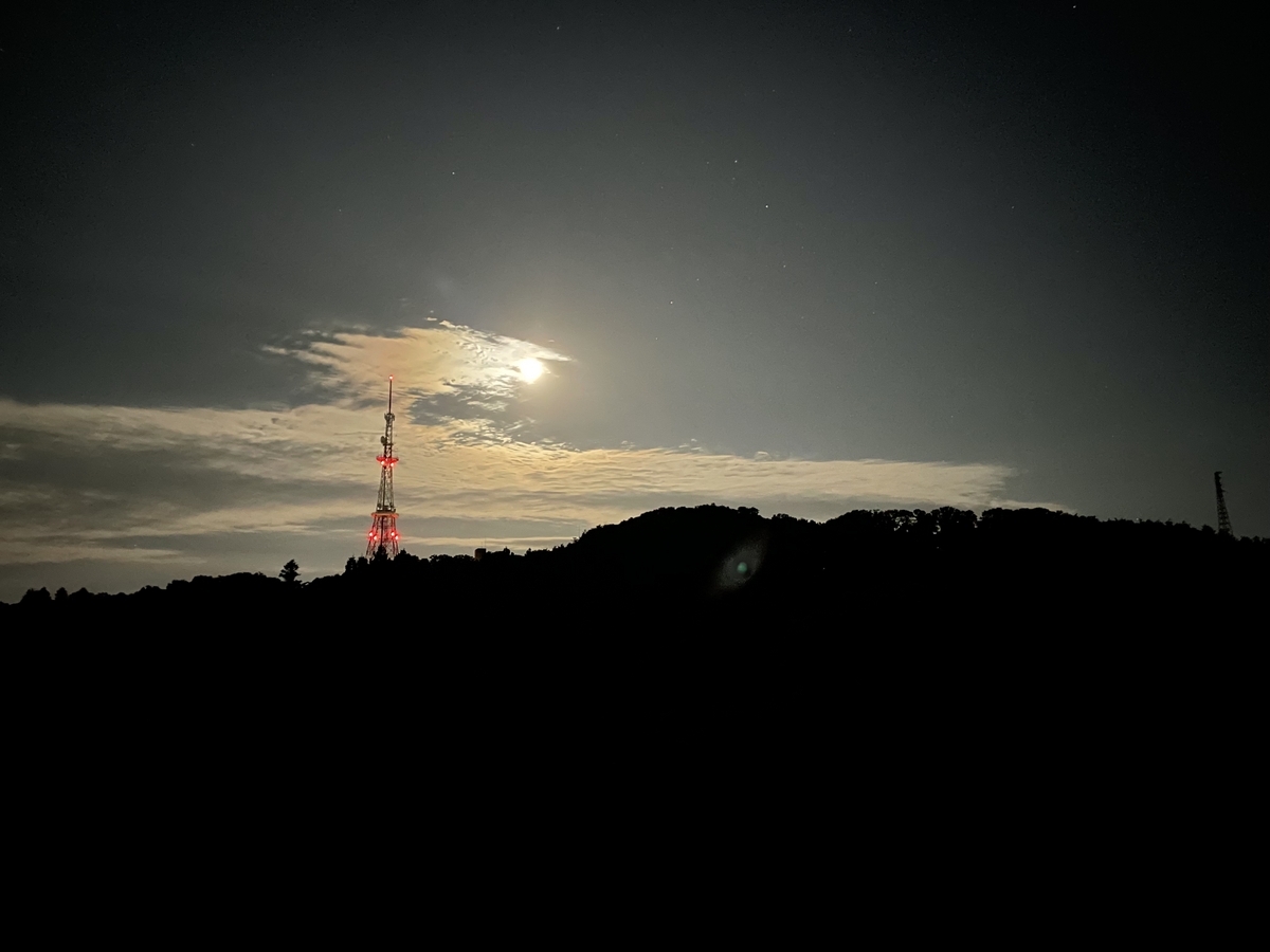 ぶらぶらしてると、案外いい角度で月が見えたので、ここでもしばらく月見をしてた。